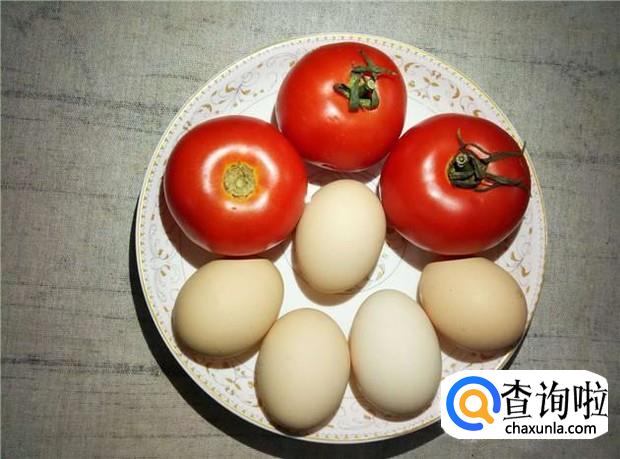 准备好3颗新鲜的番茄、5颗土鸡蛋。