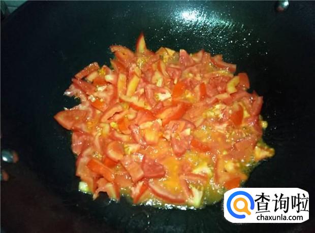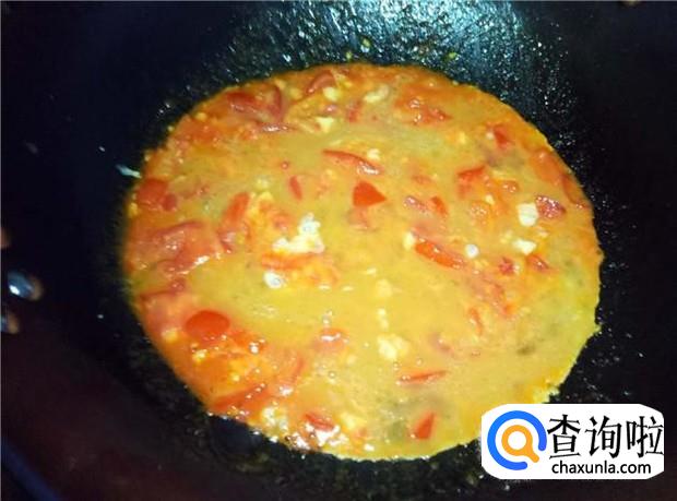 把番茄炒出番茄汁,然后把鸡蛋液给倒进去。