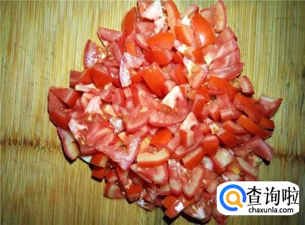番茄清洗干净,去掉番茄蒂,切成小番茄丁。