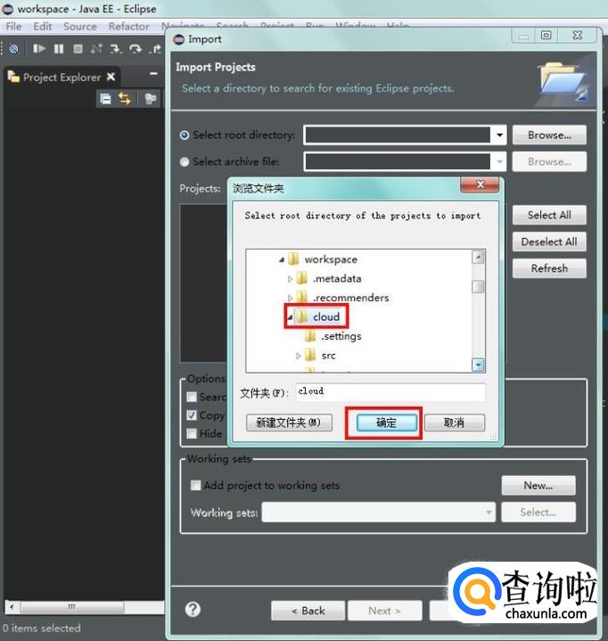 在弹出的浏览框中找到自己需要的项目根目录并单击选择,这样eclipse就可以识别项目了,确认;