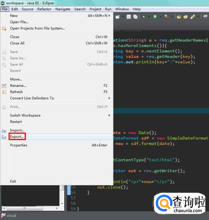 再来看导出,还是在“File”中找到“Export”,点击;