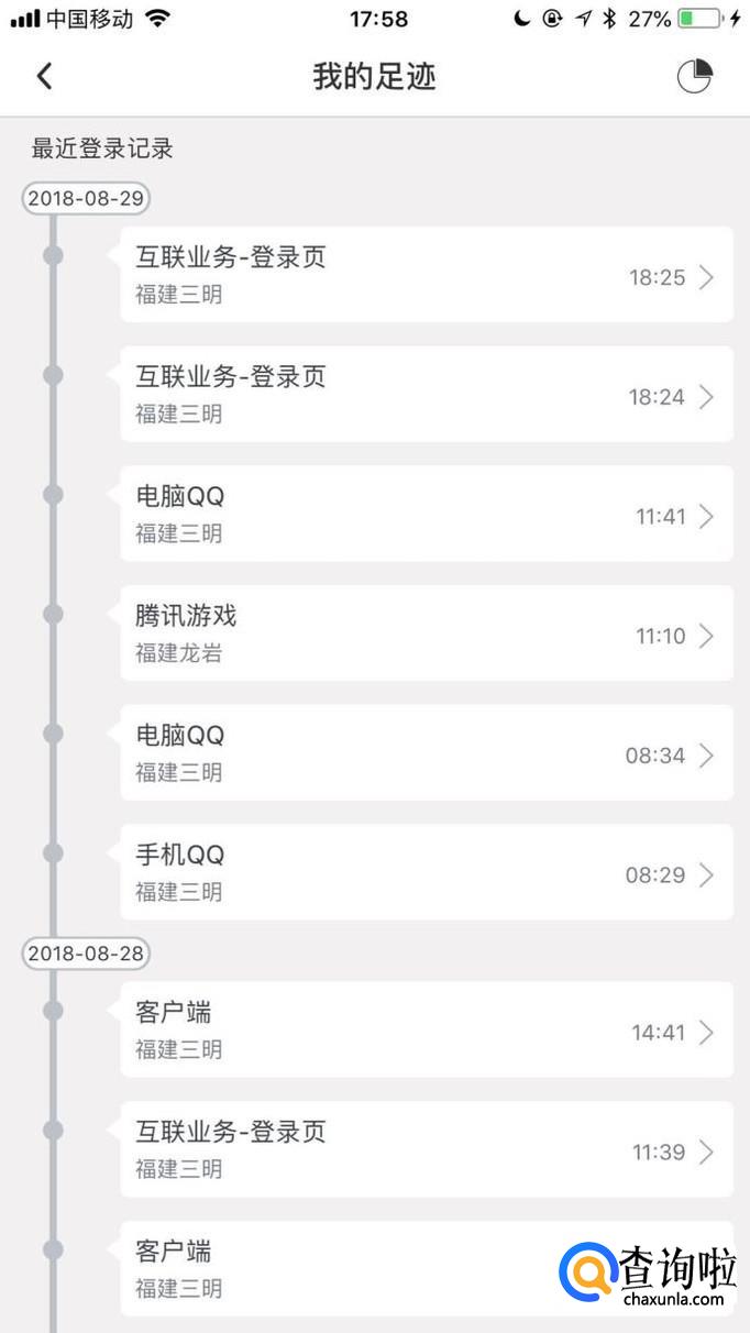 在这个界面,我们就可以查看到我们的qq在何种途径登陆过以及登陆时间。你学会了吗?赶快动手试一试吧。