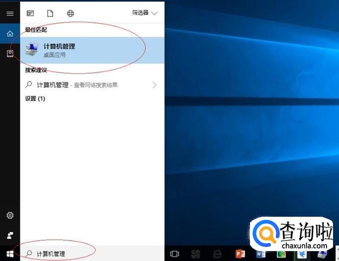 如图所示,搜索框输入"计算机管理"。Cortana(小娜)显示搜索结果,点击"最佳匹配→计算机管理"项。