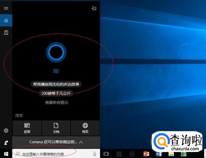 启动Windows 10操作系统,如图所示。点击任务栏搜索框,开始使用Cortana(小娜)智能语音助理。