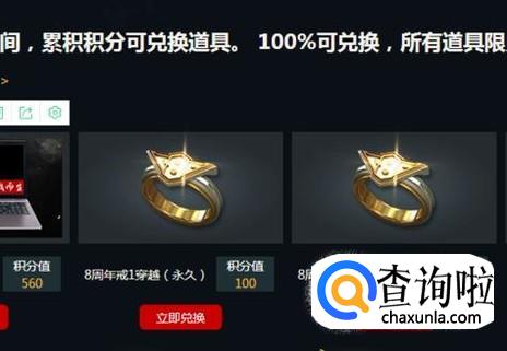游戏里面的一些戒指是可以通过活动获得的,例如,八周年的戒指,可以在道具里面用积分兑换获得戒指,如图所示。