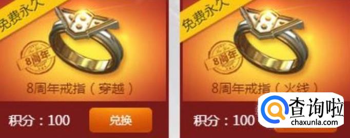 在游戏里面的火线变革计划中,可以通过积分兑换获得八周年的穿越戒指和火线戒指,如图所示。