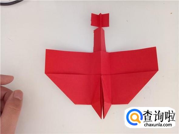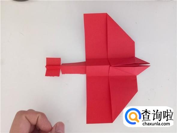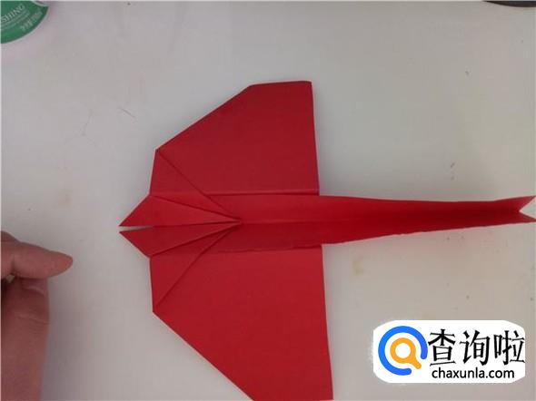 最后我们将豁口向上折叠一部分,即可将飞得远的纸飞机折好,如图所示。