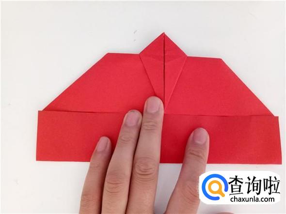 之后我们将长条横向对折,并将长条插入到飞机底部中间的缝隙,如图所示。