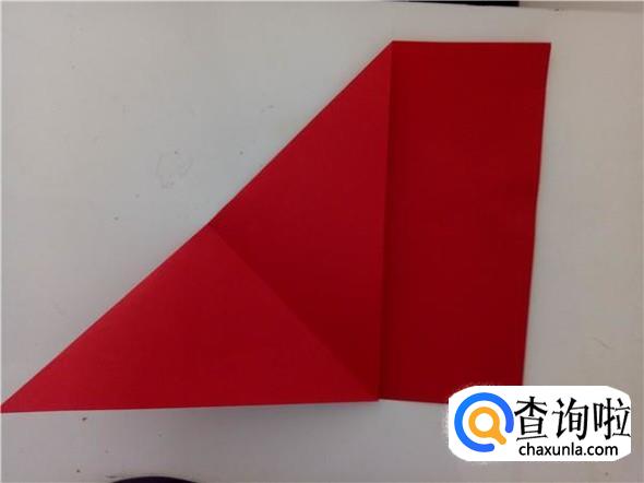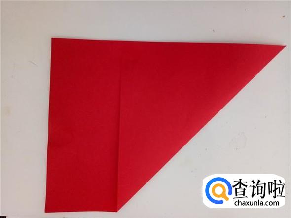 首先我们将彩纸的短边和长边对齐,折出一个大三角,如图所示。