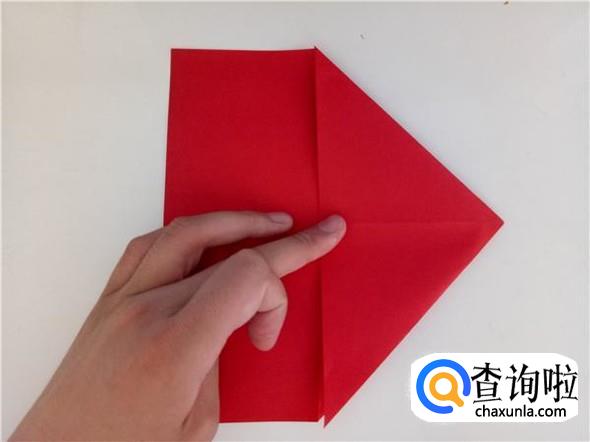 之后我们将双三角的上一层两个锐角向上面对折过去,边缘和中线对齐,如图所示。