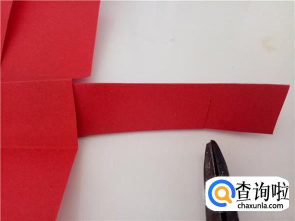 之后我们将长条多余的部分剪掉,并在尾部剪出一个豁口,如图所示。
