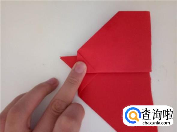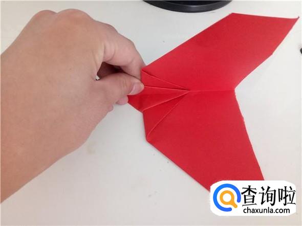 之后我们以头部折纸为基础,将两个翅膀向上折叠,之后将翅膀平放在平面上,如图所示。