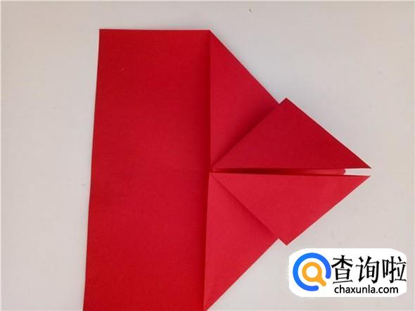 之后我们沿着之前的折痕将三角形部分折成双三角,如图所示。