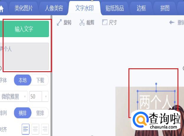 在弹出的文字编辑框里输入你想要添加的文字,例如“两个人”等。