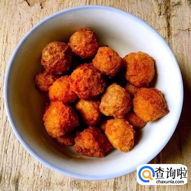 接着把做好的丸子放入油锅中炸熟。