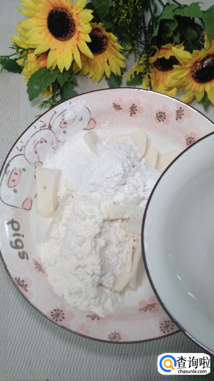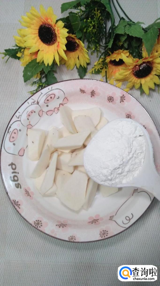 准备适量糯米粉和淀粉,糯米粉和淀粉的比例最好是1:1,这样做出来的红薯更加美味。