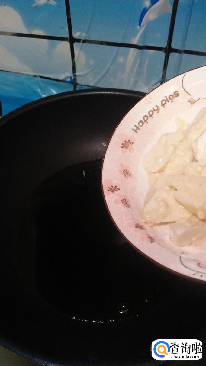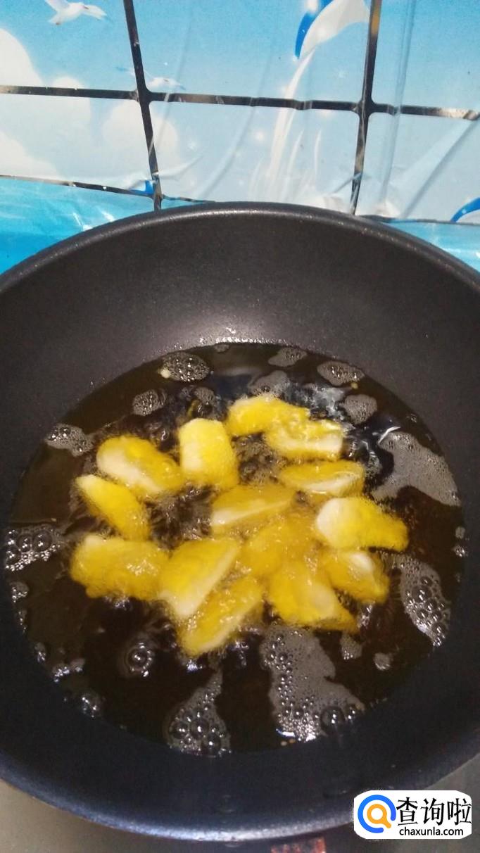 锅中烧热,油温五成热,将红薯块儿放入锅中,注意,可以使用筷子分开红薯块,一个一个放进去,防止粘连。