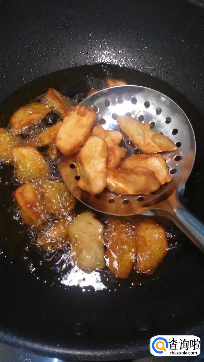 煎至外表金黄酥脆,用笊篱捞出,沥油控干,注意,不要煎糊了。