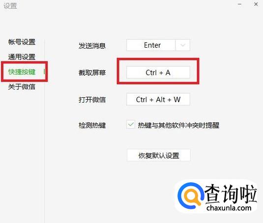 系统默认的截取屏幕快捷键为“Ctrl+A”。