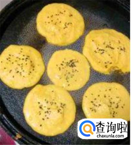 电饼铛加热,刷一层油,把那个玉米做成的丸子放进去用铲子压一下,就变成玉米饼了。喜欢吃芝麻的撒一层芝麻在上面,两面烙到金黄出锅,特别好吃哦。