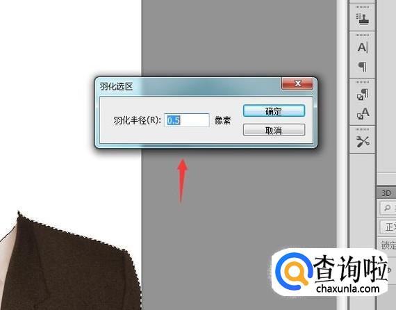 选择魔术棒工具,然后在衣服背景上点击鼠标左键,就得到了背景的选区,按下Ctrl+shift+I键反选,然后按下shift+F6键在弹出的对话框内设置羽化值为0.5,如图所示: