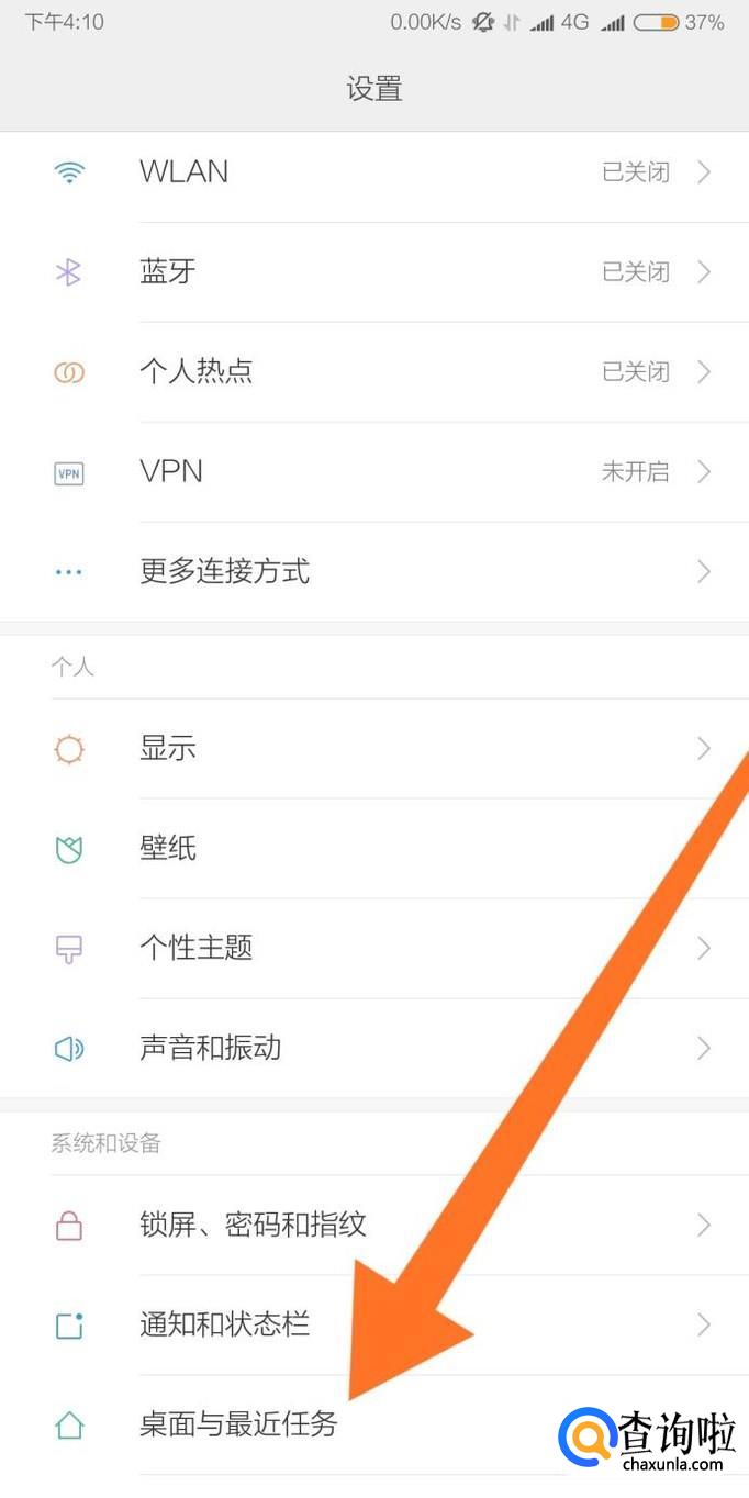 然后点击进入“桌面与最近任务”设置选项。