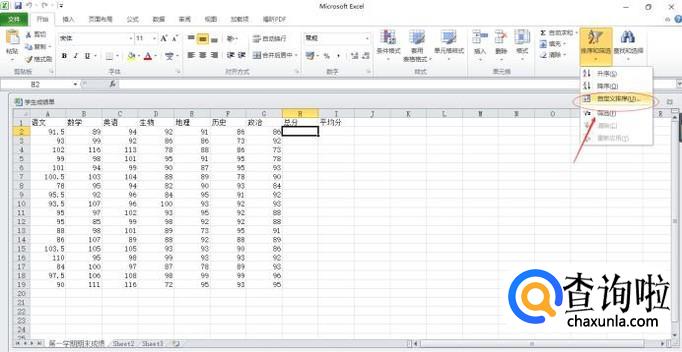 选择"自定义排序"。
