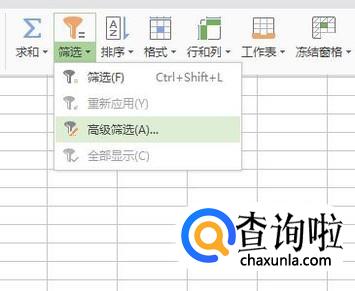 然后点击筛选中的高级筛选,如下图所示。