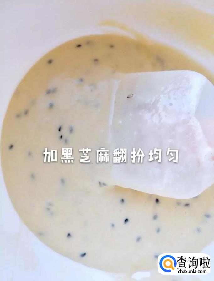 接着加入黑芝麻,翻拌均匀,如下图所示。