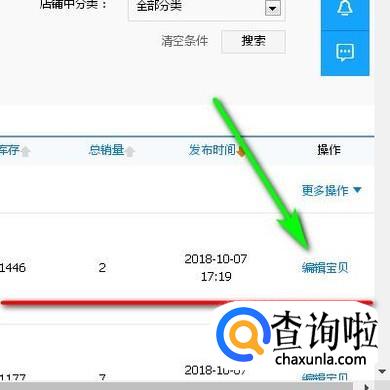 进入到出售中的宝贝这个页面中,再找到需要插入链接地址的宝贝,并点击:编辑宝贝