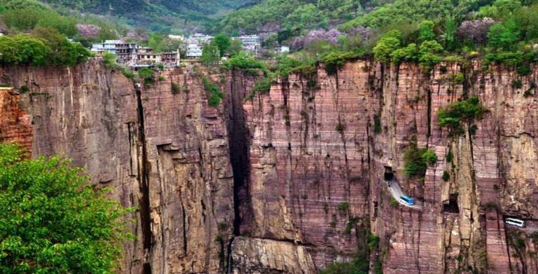 天上的村,郭亮村。今天我们要说的这个郭亮村是位于河南省辉县内的。这个郭亮村坐落在海拔1700米的悬崖上,所以又被称之为天上的村。1972年为了能让乡亲们走下山,13位村民在无电力无机械的情况下全凭手力在5年的时间里,在绝壁中凿出一条全长1300米的石洞,郭亮洞。
