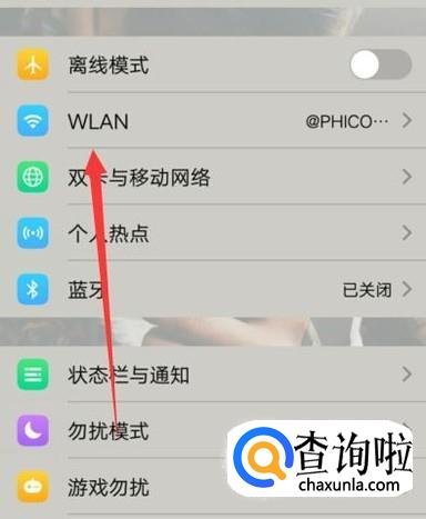 进入之后,点击“WLAN”,进入下一页面,如图所示。