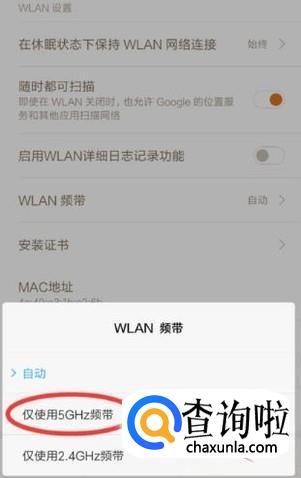 进入之后,点击“WLAN频带”,选择“仅使用5GHZ频带 ”即可。