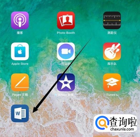 打开iPad,找到Word,点击并进入,如图所示。