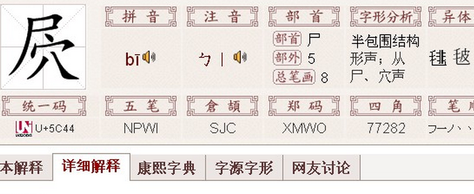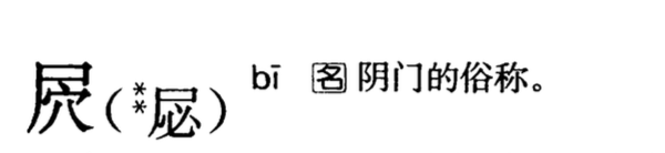 屄,阴门的俗称。对应的英语单词为pussy,亦指女性的阴部,民间粗俚用语。因为此字为生僻字,且“逼”字与此字同音,所以现在通常写为“逼”而不写成“屄”,意思不变。