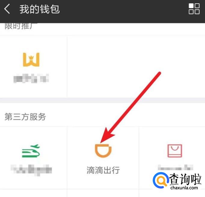 在钱包页面,找到并点击打开‘滴滴出行’。