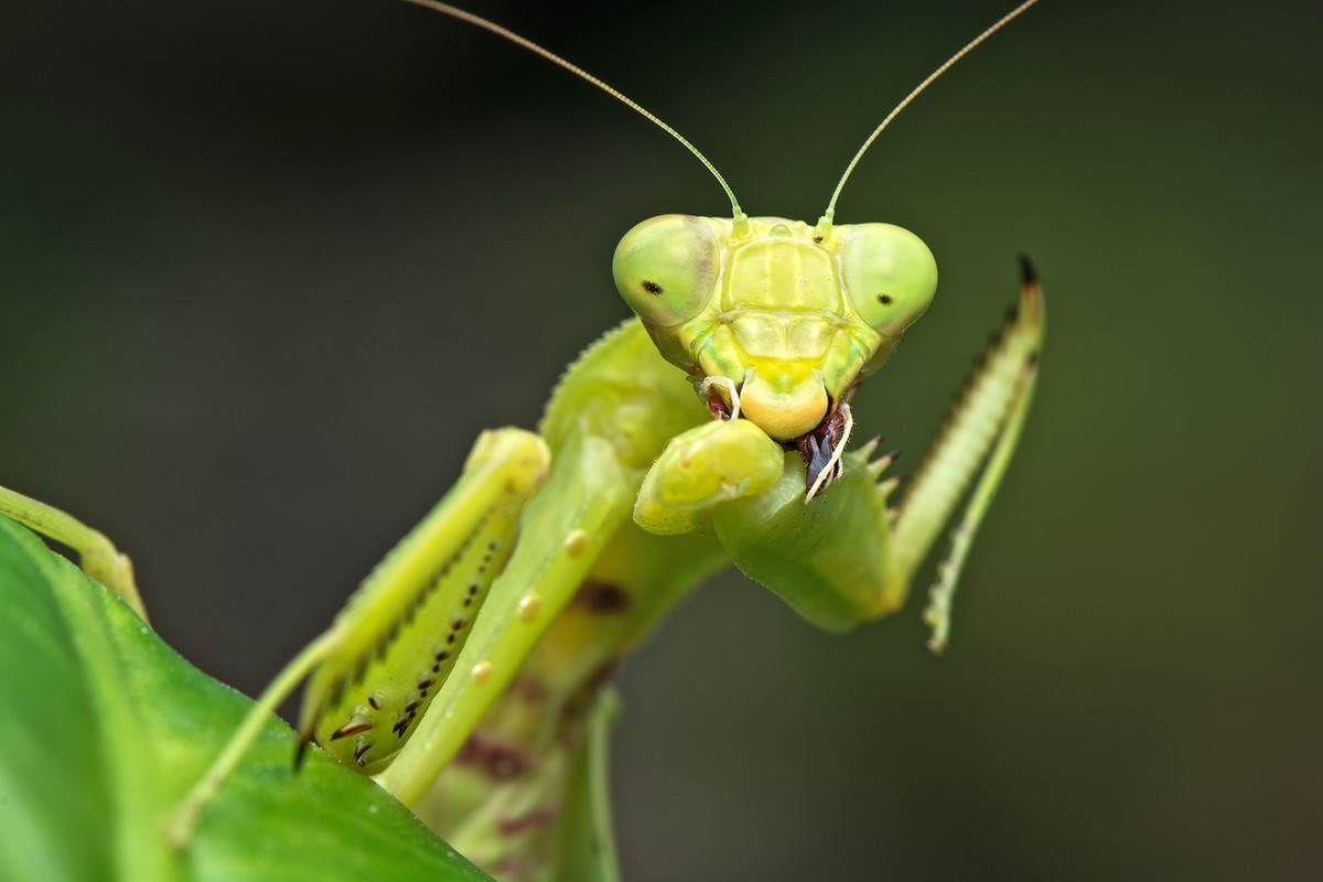 对于螳螂来说,凡是能捕捉到的皆可吃掉,有人拍到过螳螂捕杀蜂鸟,然后吃掉,自然界中也有些螳螂捕捉蜥蜴和青蛙、小老鼠等比它们稍大的小动物,可想而知螳螂是有多么的残暴好斗,而这些都是得益于它们有着能够扮做为与环境类似的动作和形态,让对手无从察觉,从而迅速攻击,利用倒钩的大前肢抓住猎物。