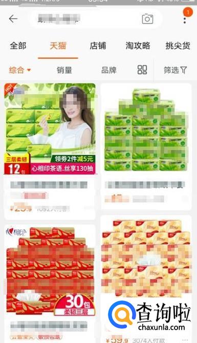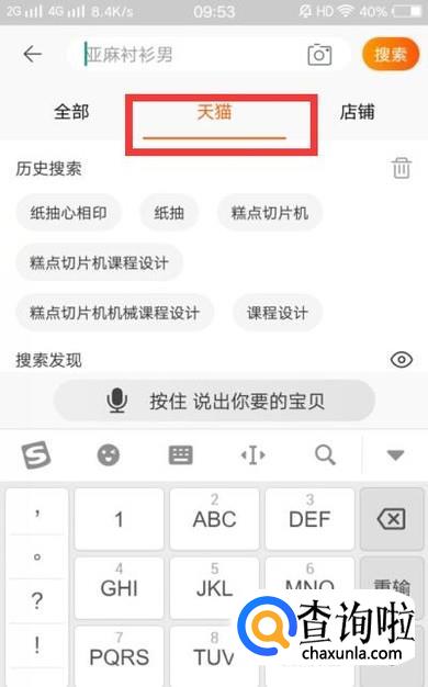 点击上方的搜索栏,进入下一页面,在搜索栏中选择“天猫”,如图所示。