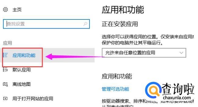 点击“应用和功能”。