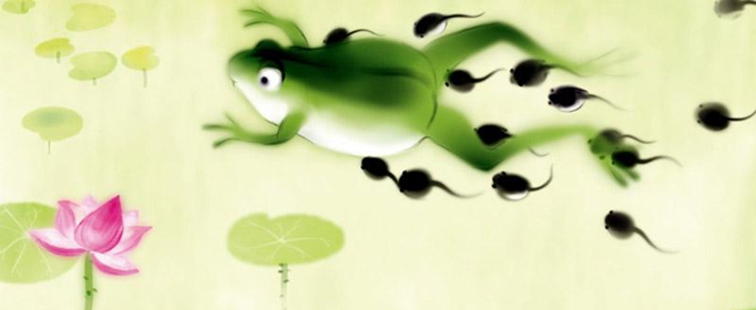 随着小蝌蚪们一而再再而三的认错母亲,到后来终于找到母亲,自己也长成母亲的样子,故事圆满结束了。而这一群群的小蝌蚪在水墨画上,不过就是一群的小墨点,而创作者们却用一帧帧不同动作形成的游动和节奏,使得小墨点都变成了灵活灵现的小蝌蚪们,给予了他们生命力。