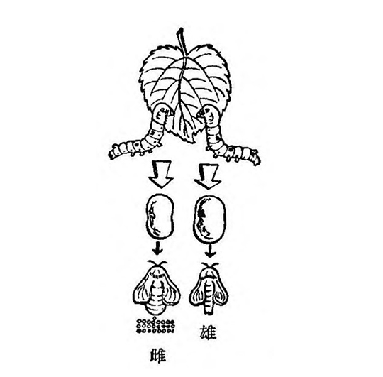 养蚕人喜欢多养雄蚕,因为雄蚕比雌蚕产丝量多。