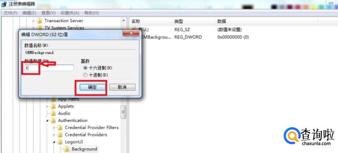 之后我们会进入注册表,找到以下项次“HKEY_LOCAL_MACHINE/SOFTWARE/Microsoft/Windows/CurrentVersion/Authentication/LogonUI/Background”。