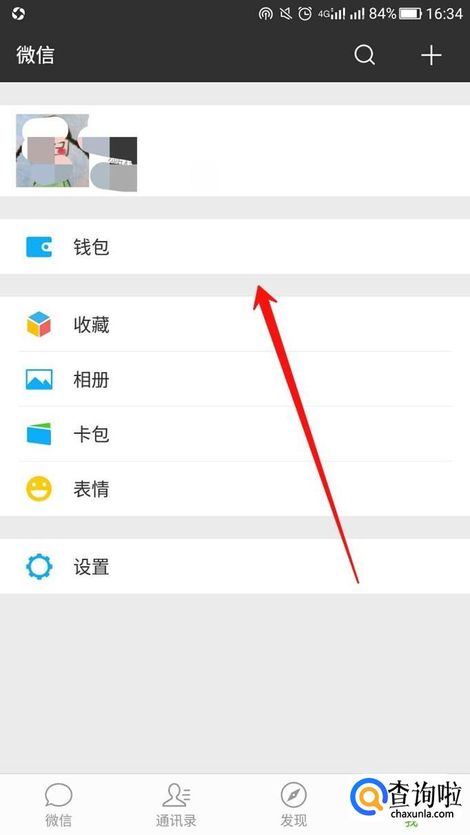 想要快速购买火车票,自然是在网上购买最快。首先打开微信,点击钱包。