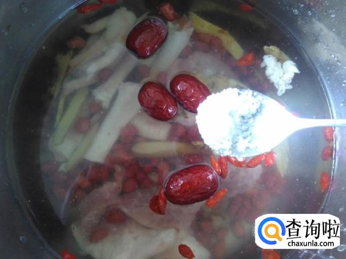 加水、适量的盐。水和食材的比例是5-1。