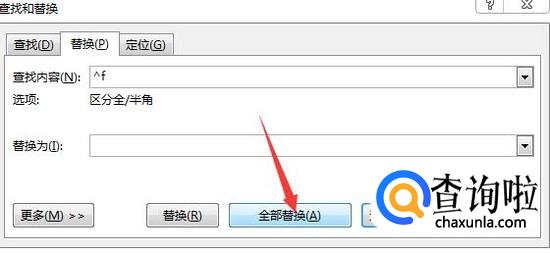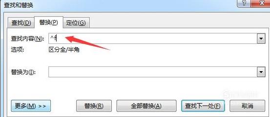 按Ctrl+H调出替换对话框,在上面的方框输入“^f”。