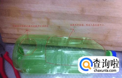将大饮料瓶剪掉三分之二左右,圆口径可以先剪小然后再慢慢调整,不要一下剪得太大,保证装水瓶和大饮料瓶之间有一定的距离就可以了。然后用打火机烧一下边缘,防止划到动物的皮肤了。