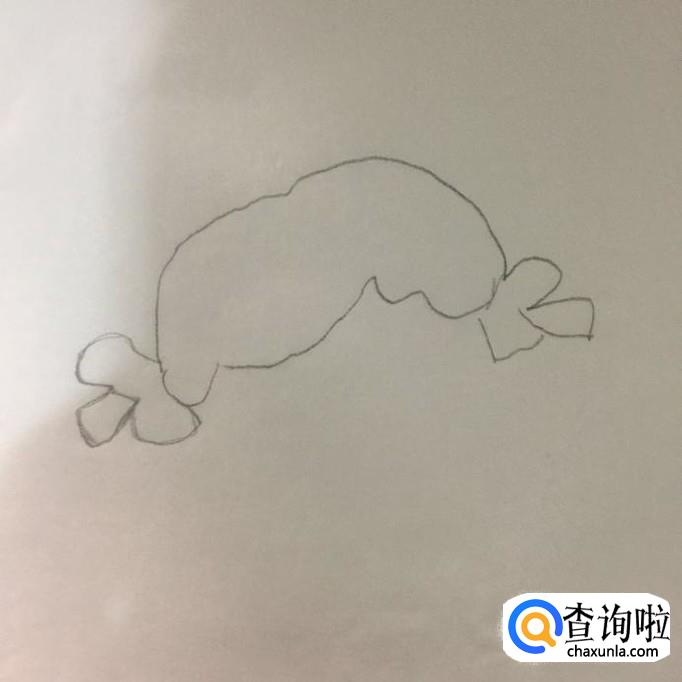 然后画出小女孩的双手和皮筋,如下图所示。双手长度应该和蝴蝶结的外沿宽度差不多就可以了。