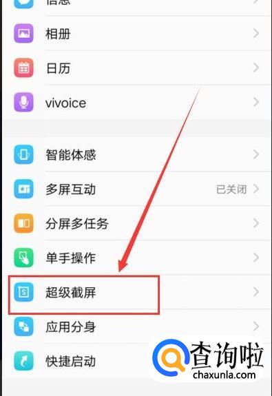在“设置”页面找到“超级截屏”点击并进入,如图所示。