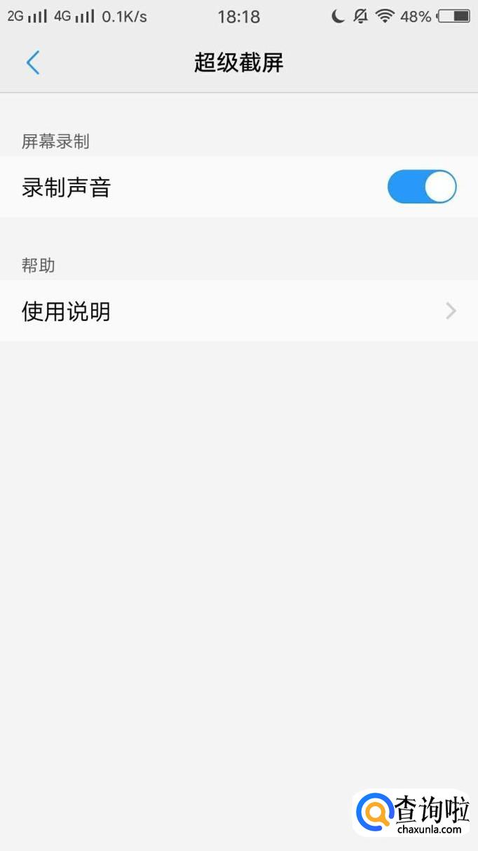 进入“超级截屏”页面,将“录制声音”选项打开即可,如图所示。