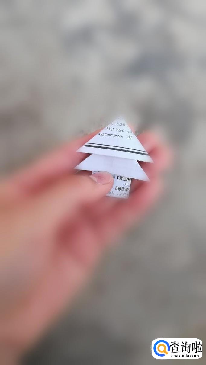 最后,将下方三角形的顶角向上折起来,塞入上面的三角形内部即可。这样,一个美丽的圣诞树就轻松完成啦!
